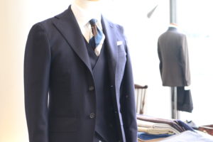 本日は、イタリアの名門「CACCIOPPOLI」のフランネルネイビー3Pスーツのご紹介です。