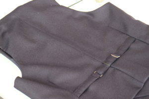 ベストの背中部分は表と同じ生地にして脱いでも統一感が出るようにしています。