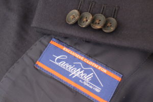 名門生地というと「ゼニア」「ロロピアーナ」が有名ですが、「CACCIOPPOLI」も「ゼニア」「ロロピアーナ」に負けない名門生地ブランドです。