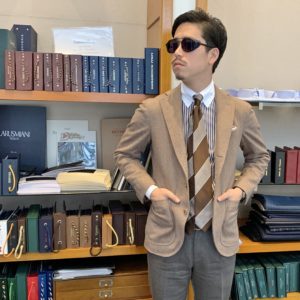ルカ氏のファッションスタイルは、クラシコイタリアの原点ナポリの伝統を持ちつつも、ブリティッシュのイメージも取り入れ自分流のファッションを伝えている今やイタリア中にその名を知られるウェルドレッサーでもあるのです。